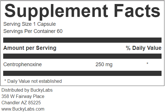Each bottle contains 60 capsules with 250mg of Centrophenoxine per serving (1 capsule).